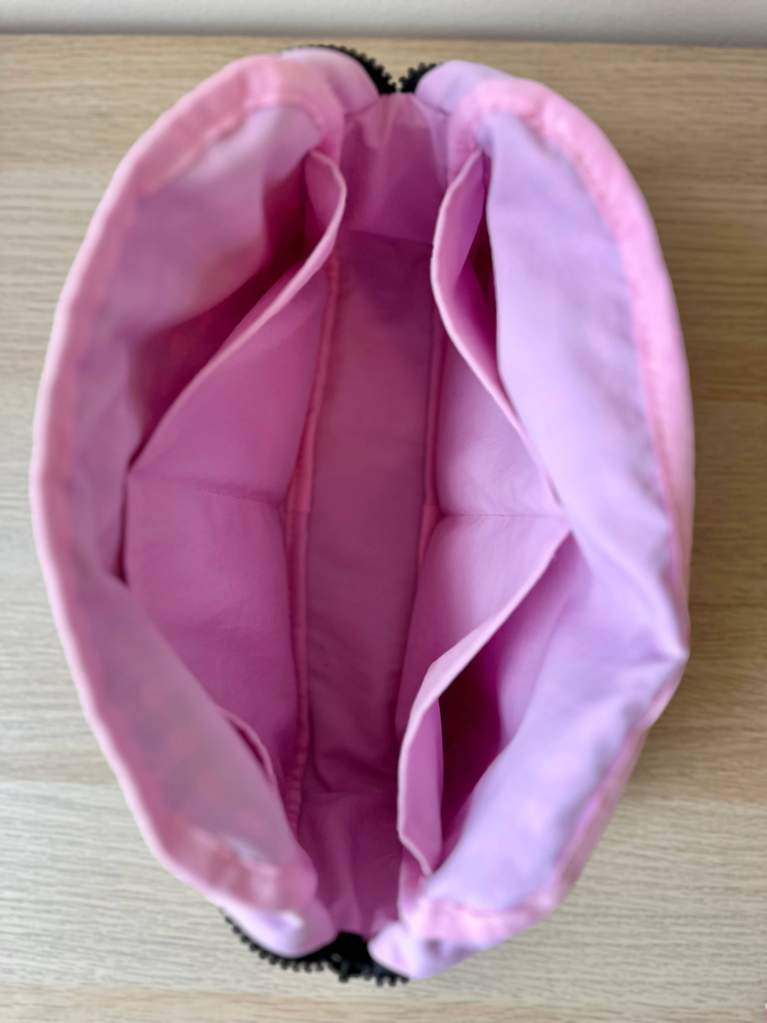 Black heavy duty plastic D-rings either side of zip - perfect for adding your own bag strap (not supplied) or accessorising with bag charms.